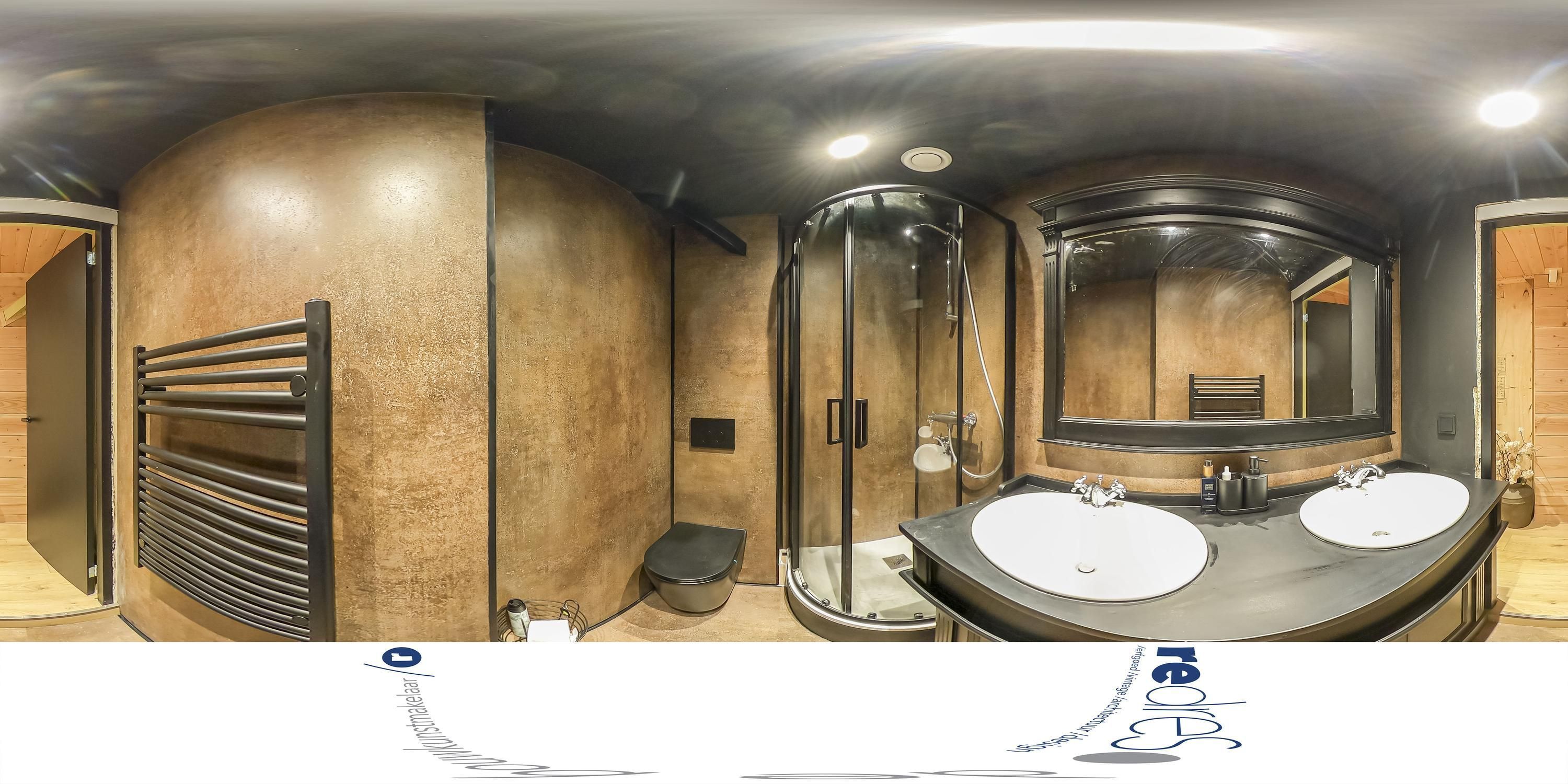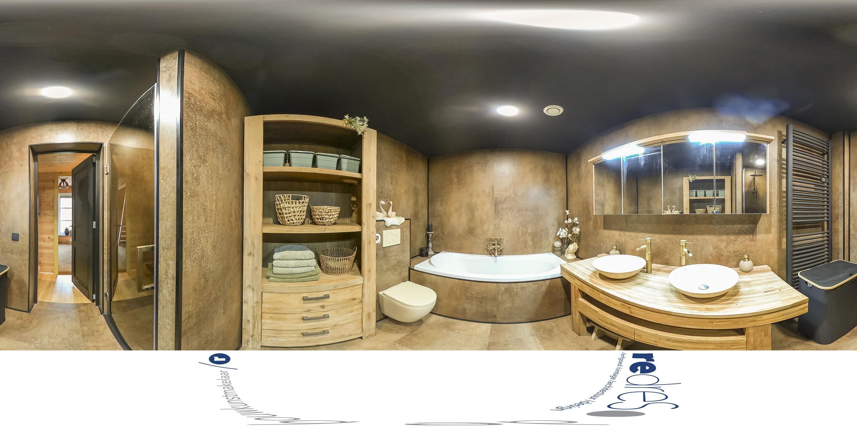 Tussen het voorhuis en de deel ligt het slaaphuis. Dit volume is volledig opnieuw ingericht en omvat zes slaapkamers en twee badkamers. De badkamers zijn voorzien van bad en douche en dubbele wastafels en zijn rustig en functioneel uitgevoerd. Daken, gevels en binnenwanden zijn geïsoleerd met houtvezelplaten. Alle kozijnen zijn vervangen door hardhouten kozijnen met isolerende beglazing.