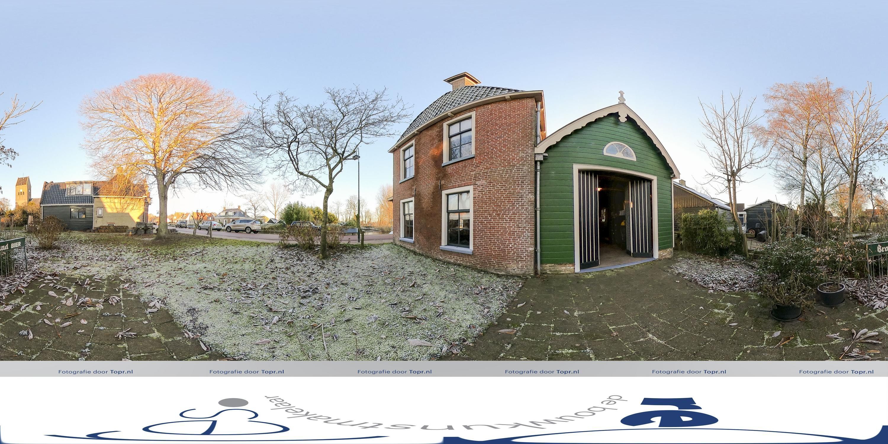 De oudste delen van dit fraaie Rijksmonument dateren van 1600, het nu zichtbare gedeelte stamt uit de vroege 19e eeuw. Het is een beeldbepalend gebouw langs deze romantische waterroute, waar nu de pleziervaart, met kruisers, sloepen en zeiljachten, de boventoon voert. Aan de kade, pal voor het huis, vinden we de aanlegplaats voor het voormalig beurtschip – thans rondvaartboot – de Kenau, want dat is Friesland; het land van melk, honing en waterrecreatie. Vandaag de dag passeren veel watersporters en fietsers dit lieflijke plaatsje.