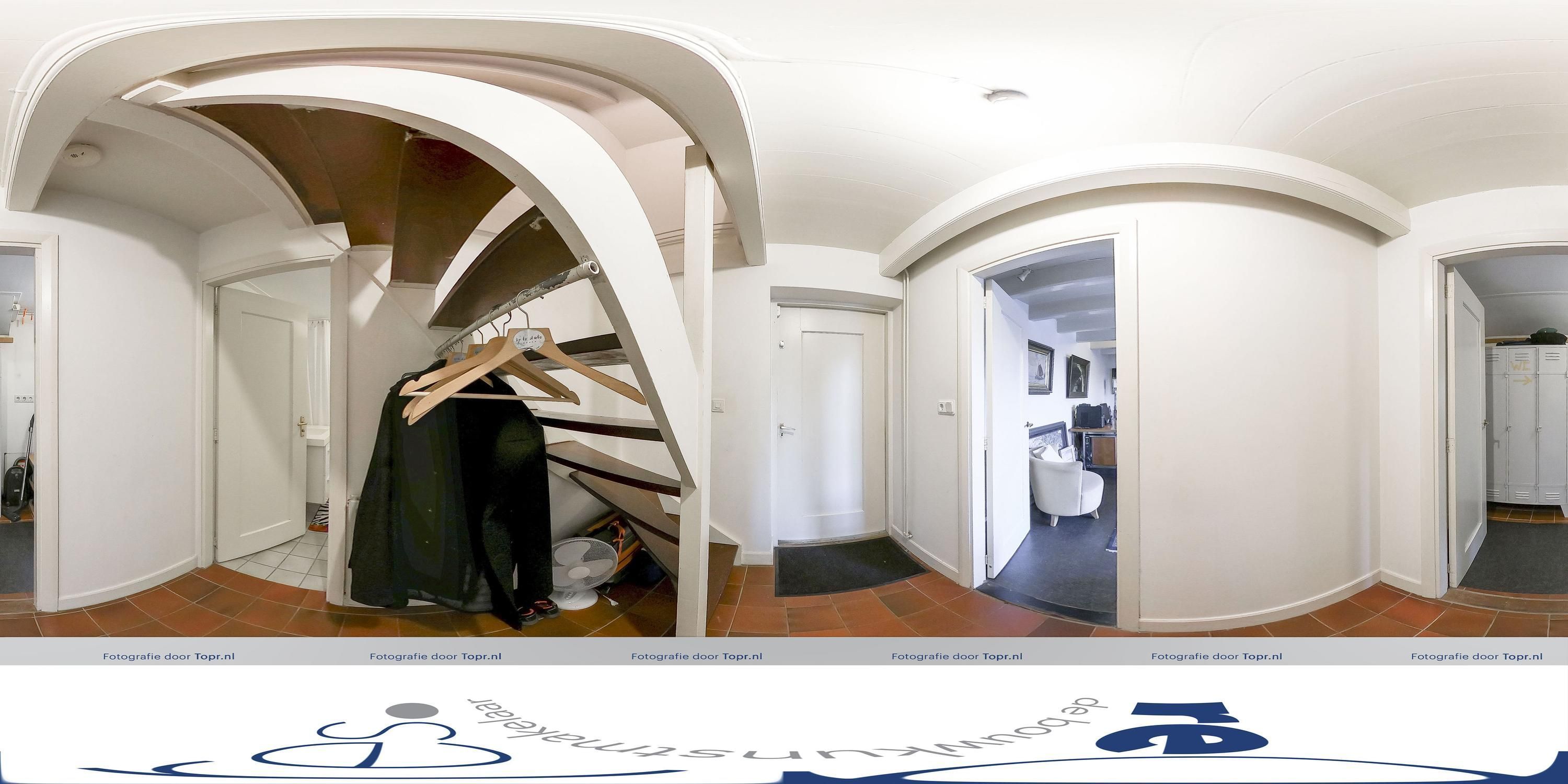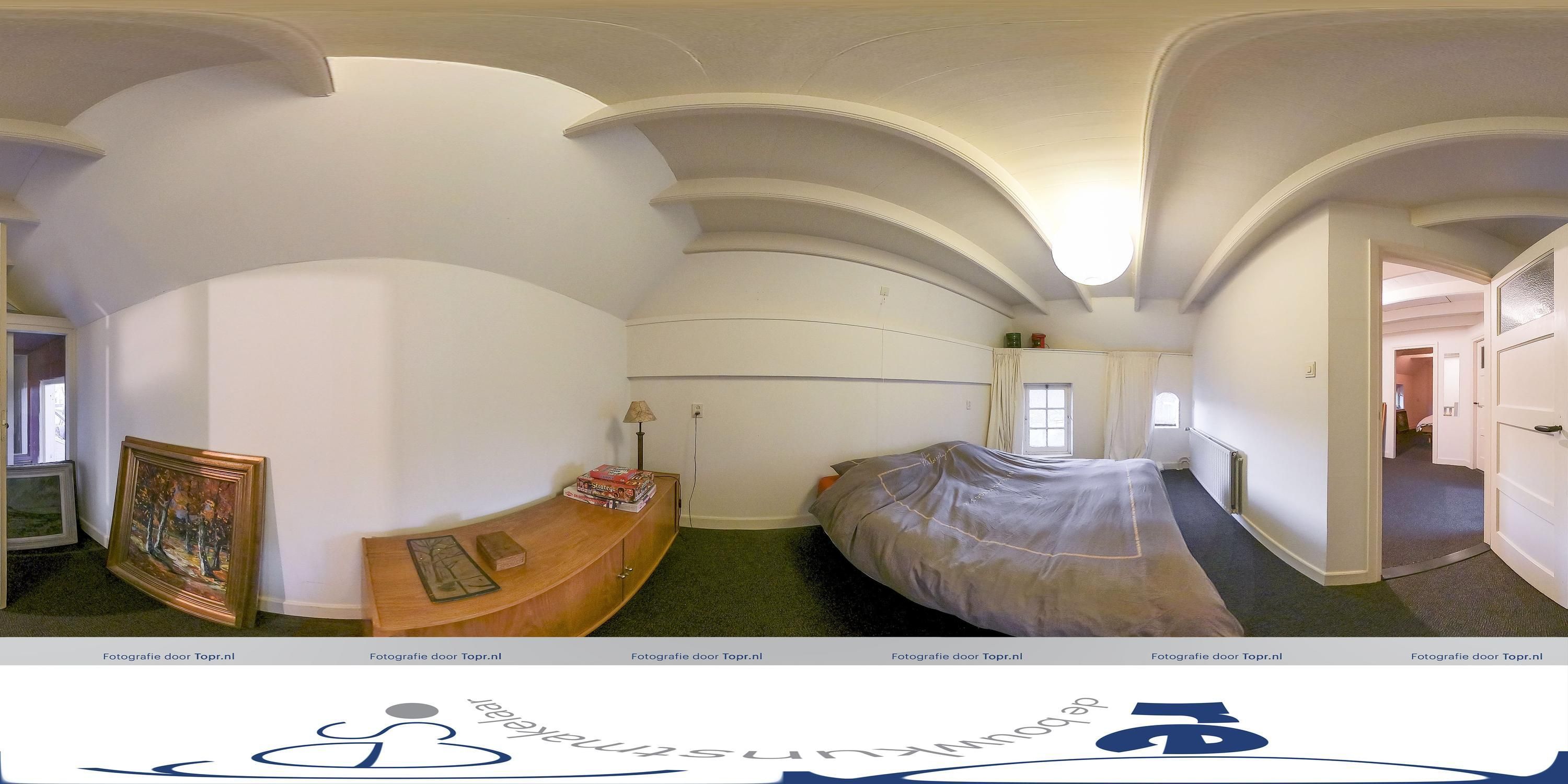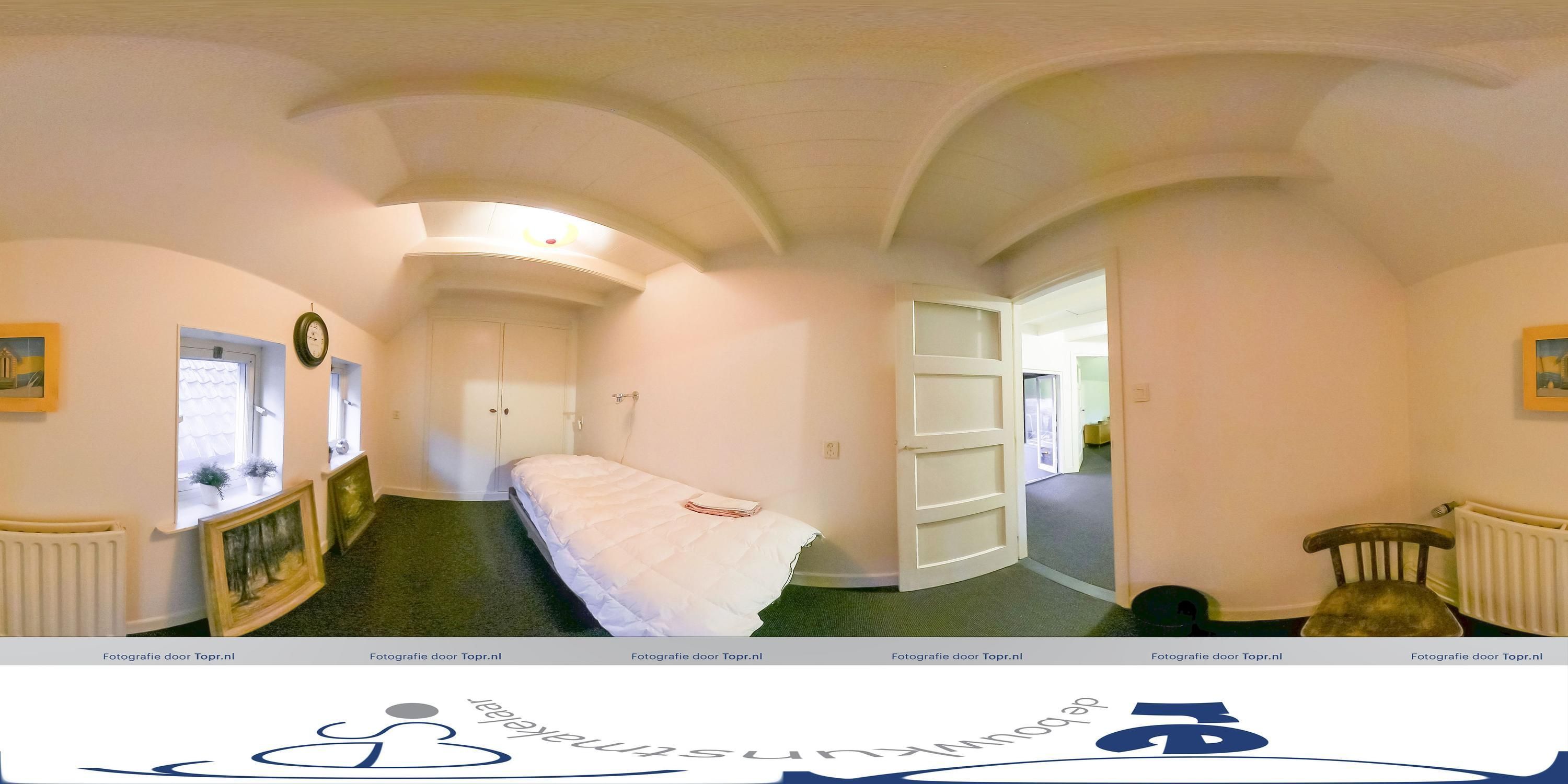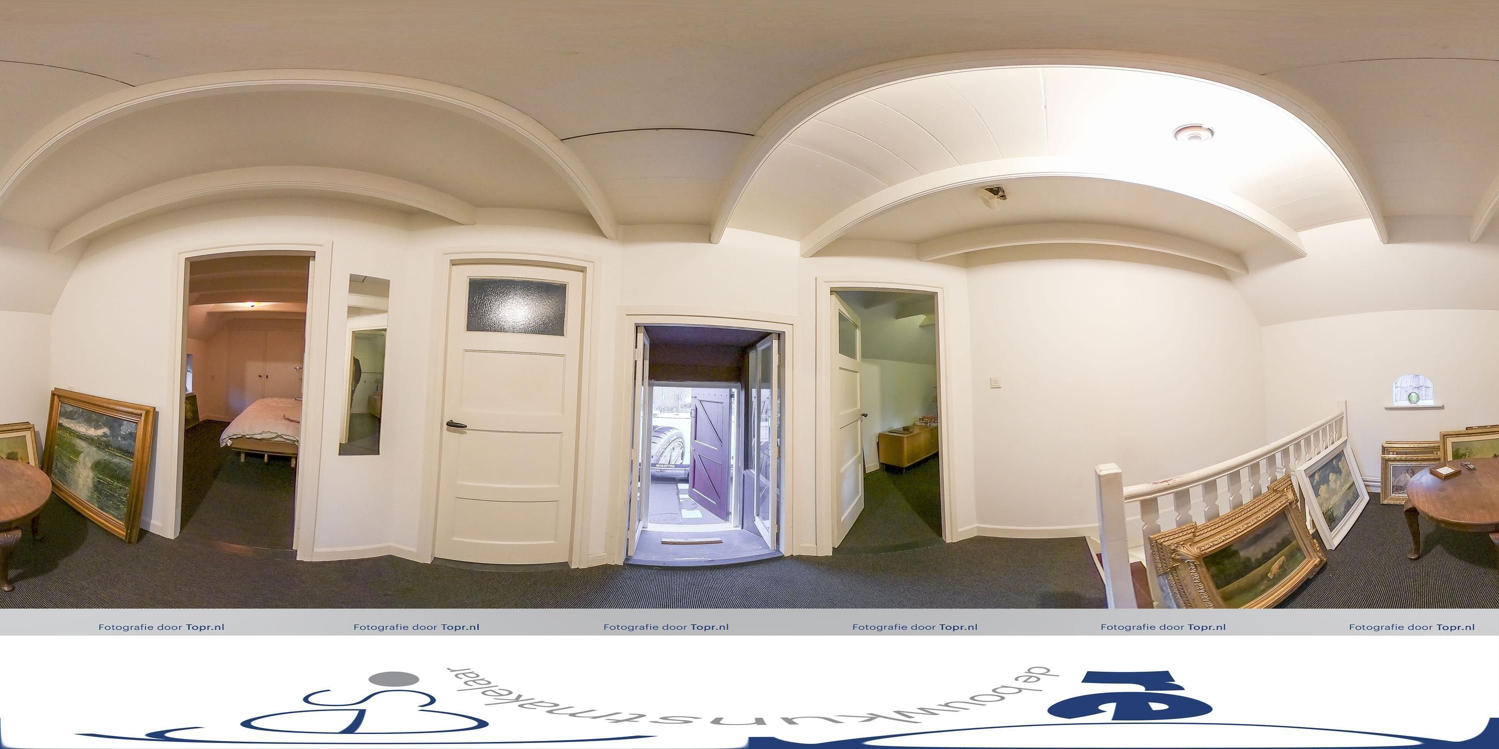 Vanuit het woonhuis de trap op naar de overloop met daaraan grenzend drie flinke slaapkamers en toegang tot het hooiluik, want hier zal van oorsprong de hooiopslag zijn geweest.