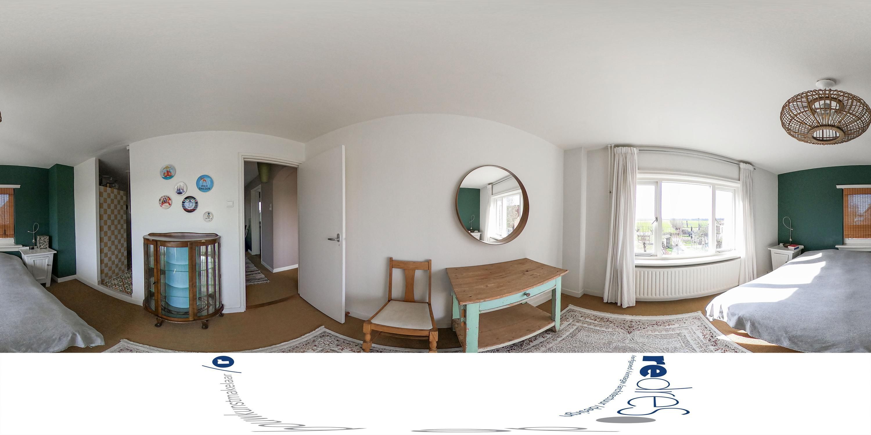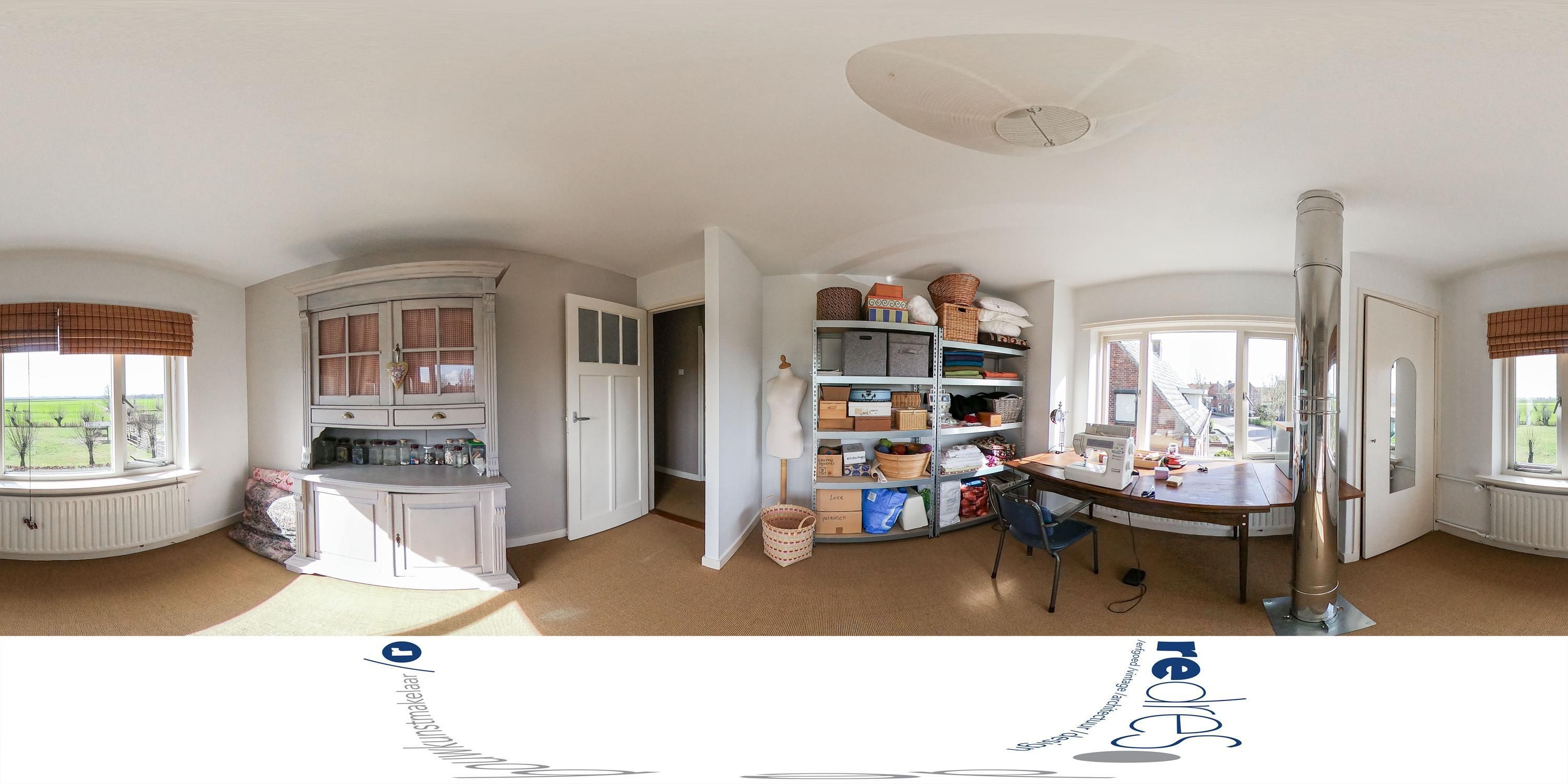 Er is een kleine badkamer en een keukenblok aanwezig, waardoor dit deel zelfstandig kan functioneren voor wonen of werken. Juist deze ruimte maakt zichtbaar hoe veelzijdig Polderzicht is. Hier kan worden geschilderd, gewerkt, ontvangen, gelogeerd of gewoond. De maat en de opzet laten meer toe dan één vastgelegd programma.