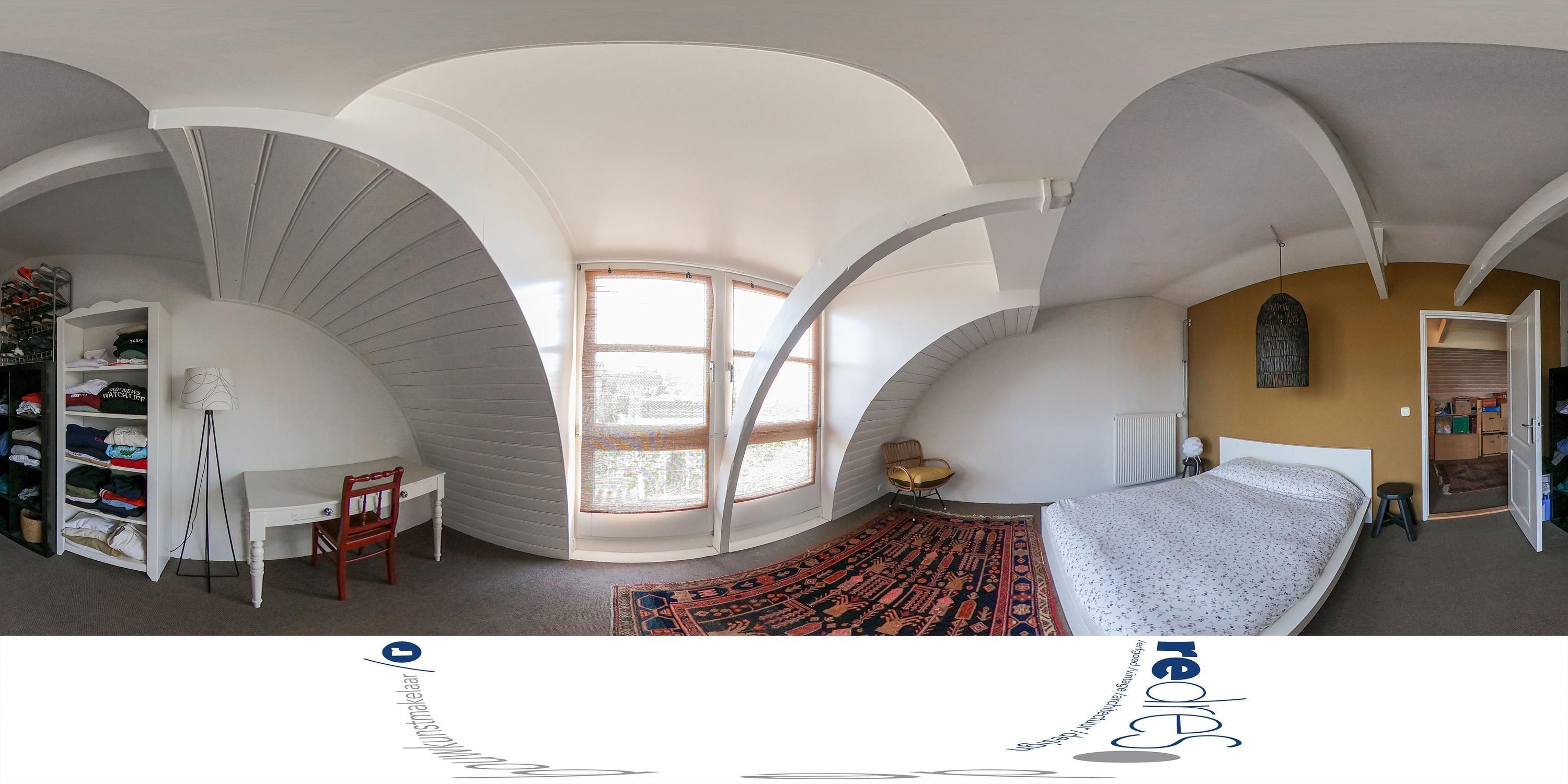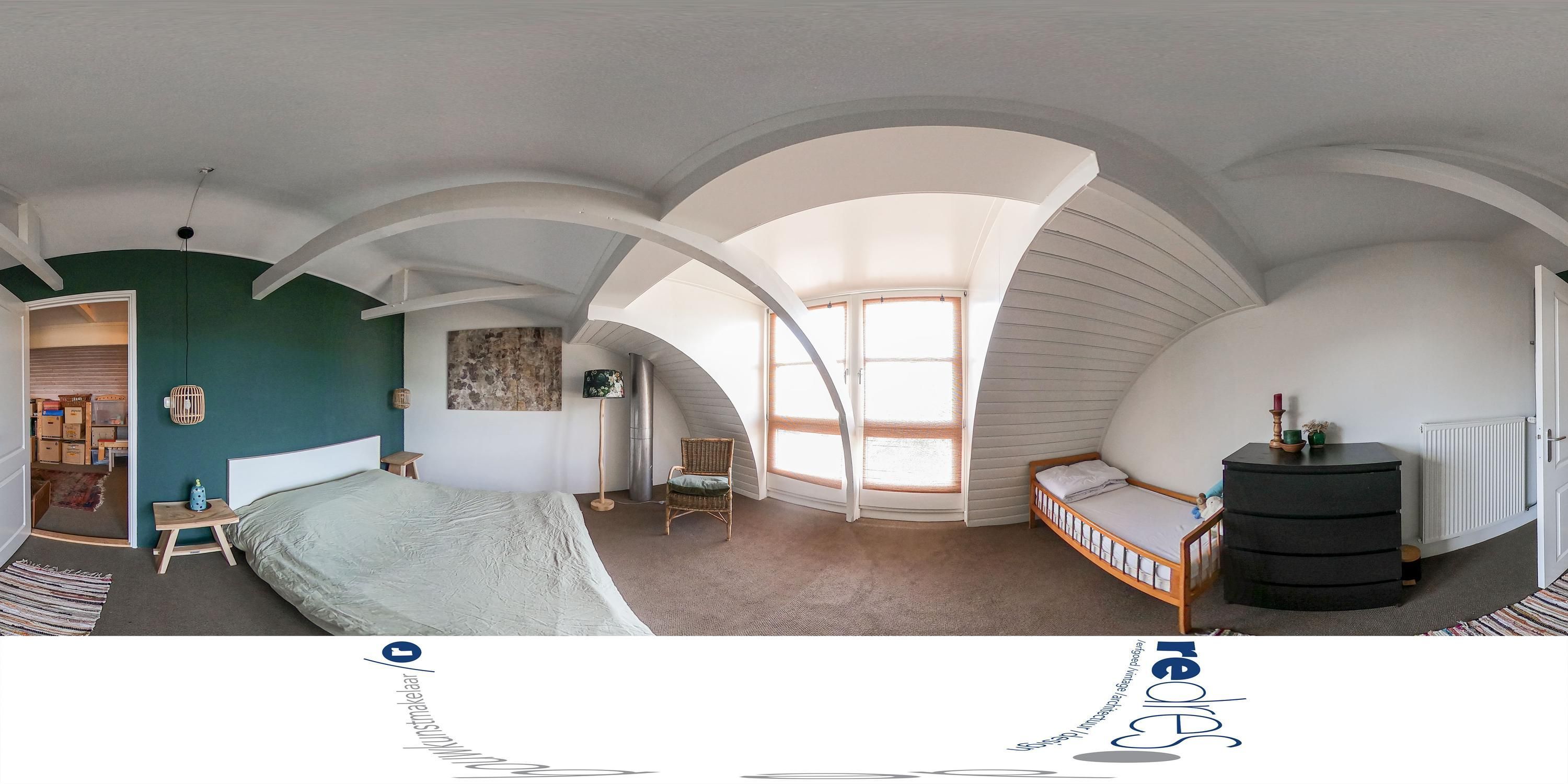 Het voorhuis beschikt over een tweede verdieping onder de kap met een slaapkamer van circa 18 m² en bergruimte. Dit deel is geschikt als extra slaap- of werkruimte. Door de ligging onder de kap heeft deze verdieping een meer teruggetrokken karakter, passend bij logeren, studeren of werken in afzondering.