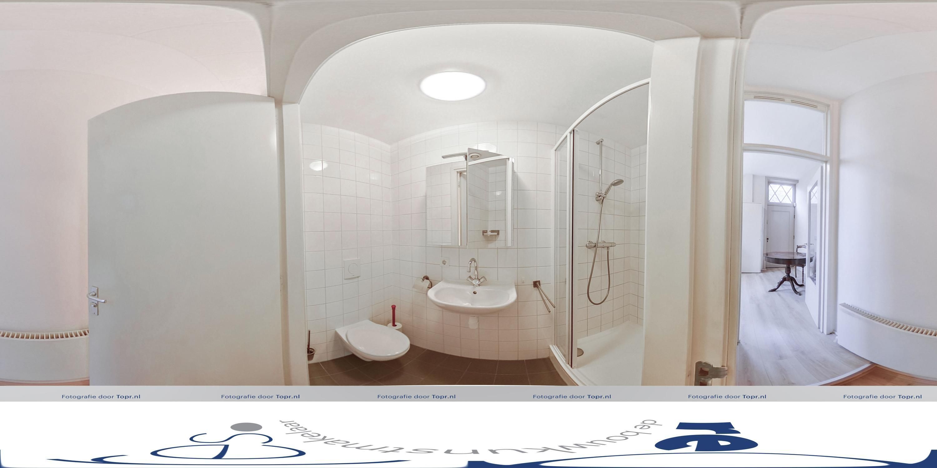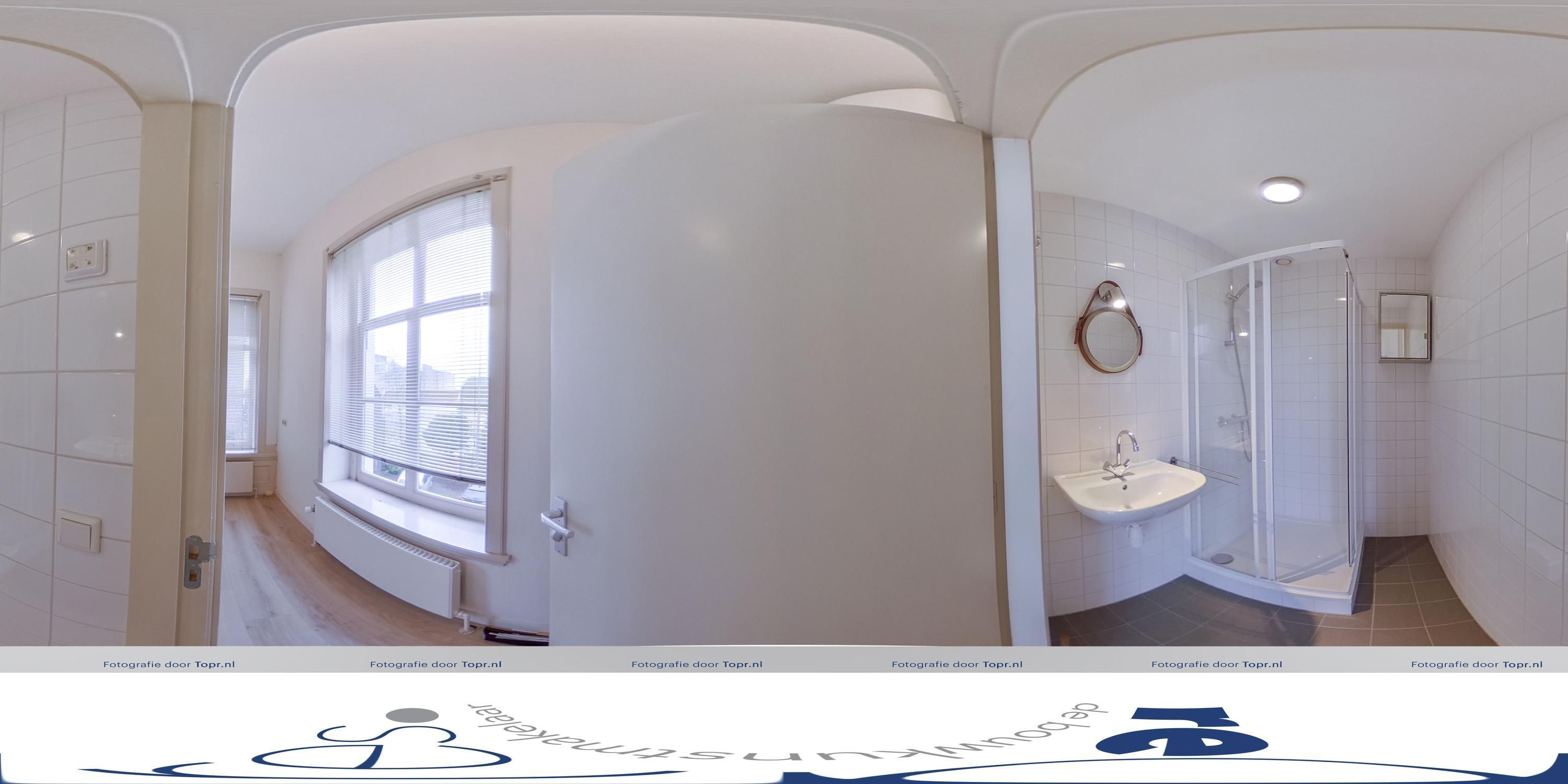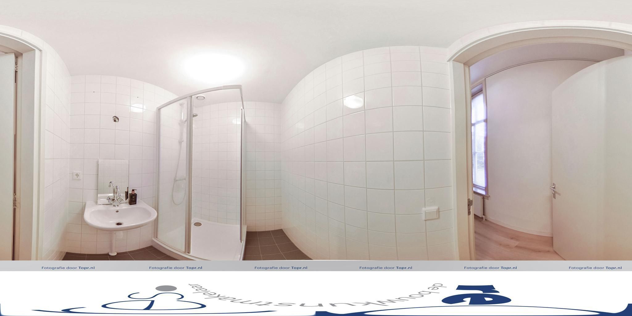 Via de prachtige monumentale trap komen we op de eerste verdieping. Deze verdieping echoot het programma van de begane grond. Wederom een lange gang in het midden en aan weerszijden een voor- en achterkamer. Op dit moment zijn dit eveneens twee ruime woonunits die beide grenzen aan de gang. Elk voorzien van een eigen keuken en badkamer. Ook hier zijn deze voorzieningen reversibel ingebouwd zodat bij een wederopstanding naar de oorspronkelijke villa deze zaken eenvoudig verwijderd en naar eigen wens aangepast kunnen worden.