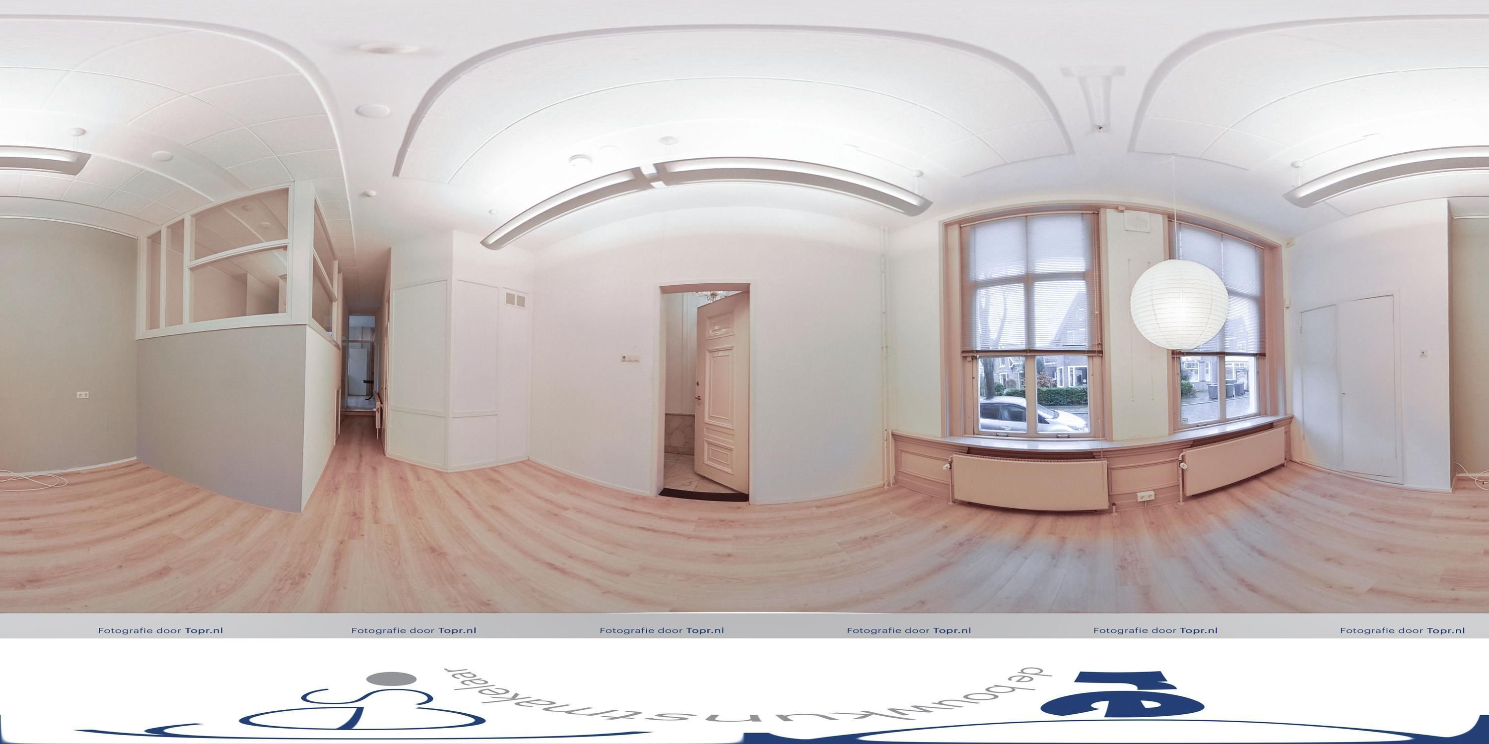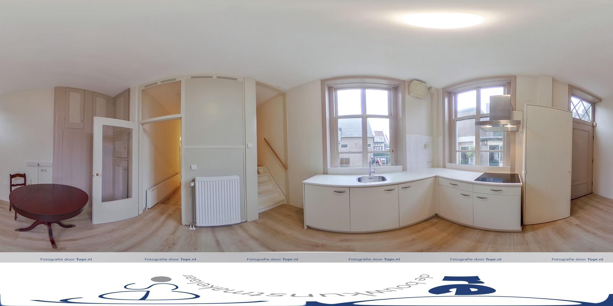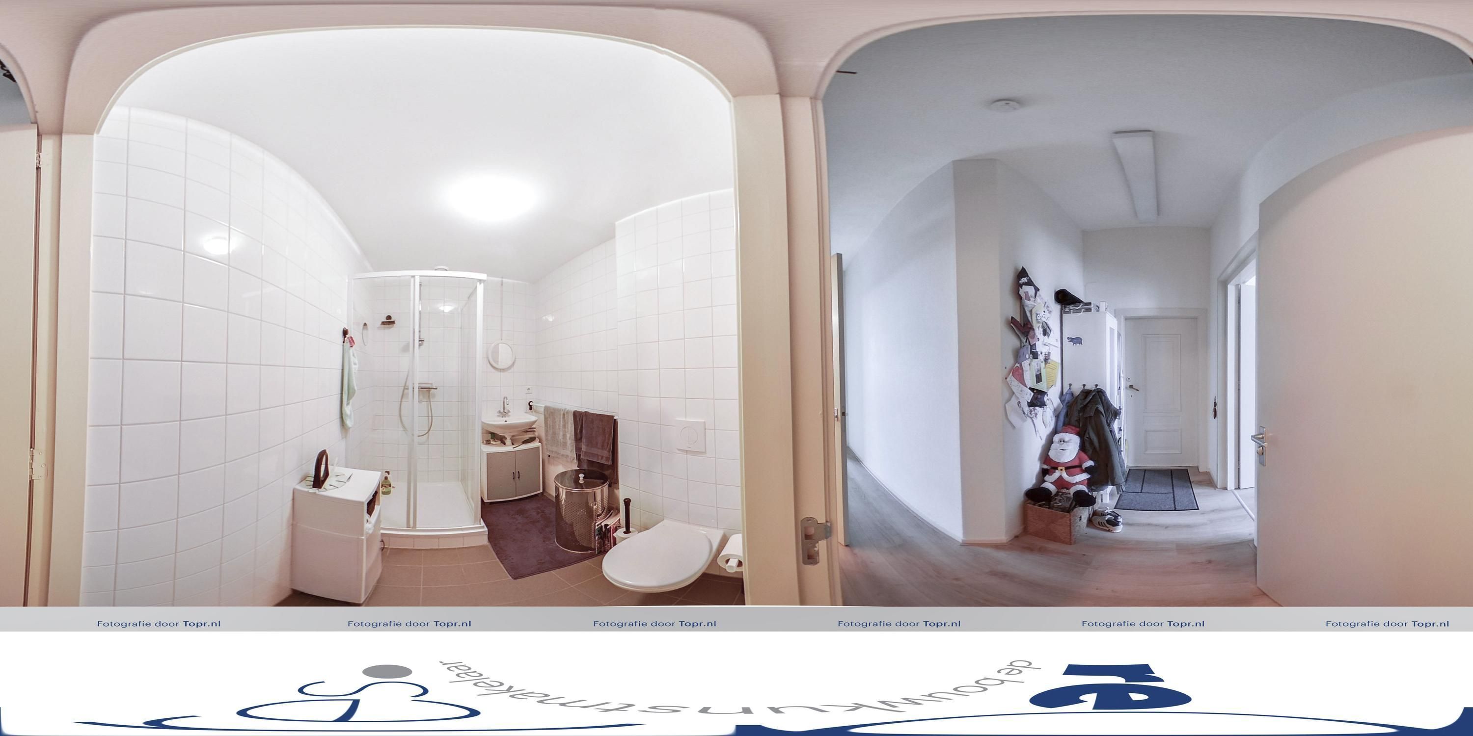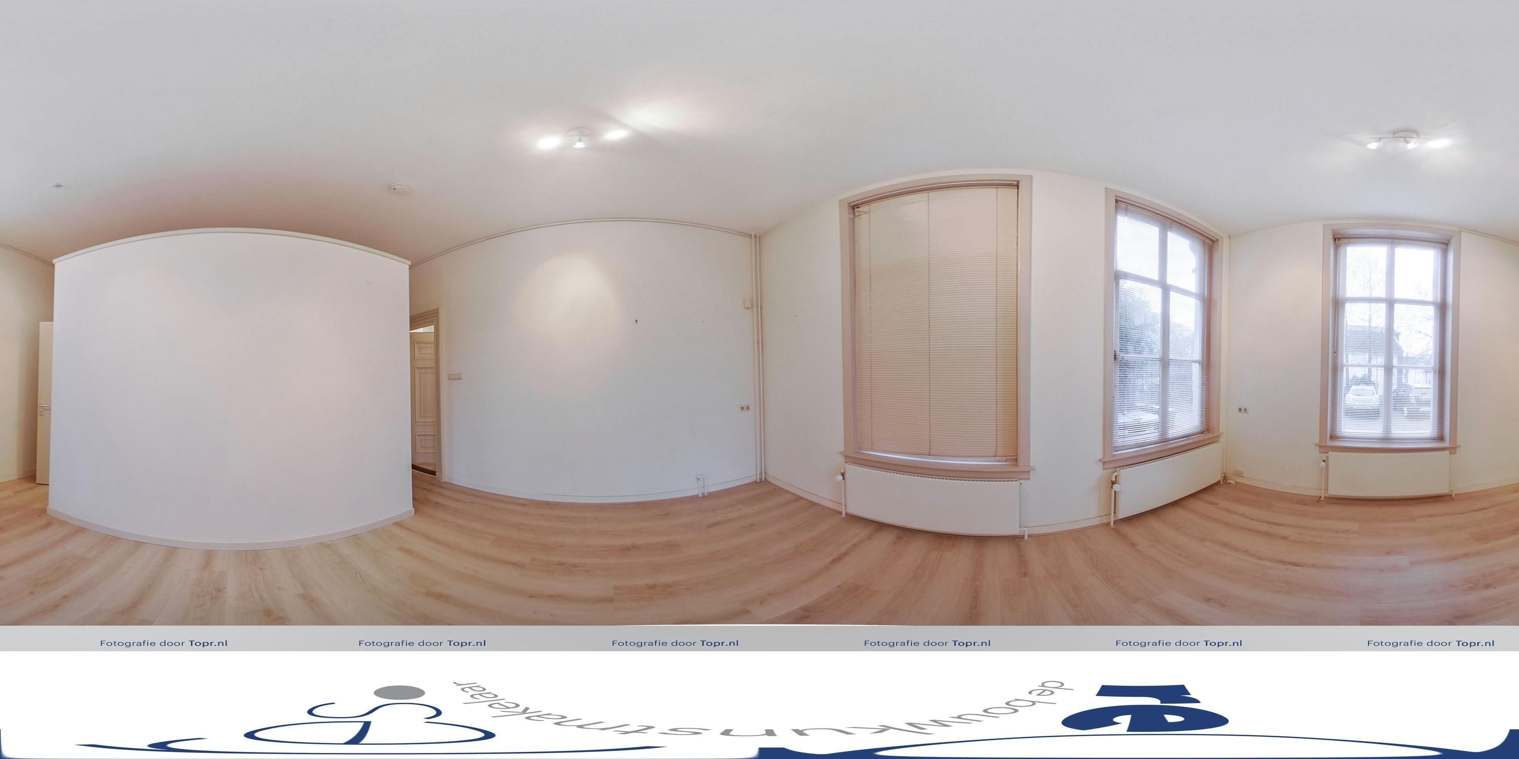 Via de prachtige monumentale trap komen we op de eerste verdieping. Deze verdieping echoot het programma van de begane grond. Wederom een lange gang in het midden en aan weerszijden een voor- en achterkamer. Op dit moment zijn dit eveneens twee ruime woonunits die beide grenzen aan de gang. Elk voorzien van een eigen keuken en badkamer. Ook hier zijn deze voorzieningen reversibel ingebouwd zodat bij een wederopstanding naar de oorspronkelijke villa deze zaken eenvoudig verwijderd en naar eigen wens aangepast kunnen worden.